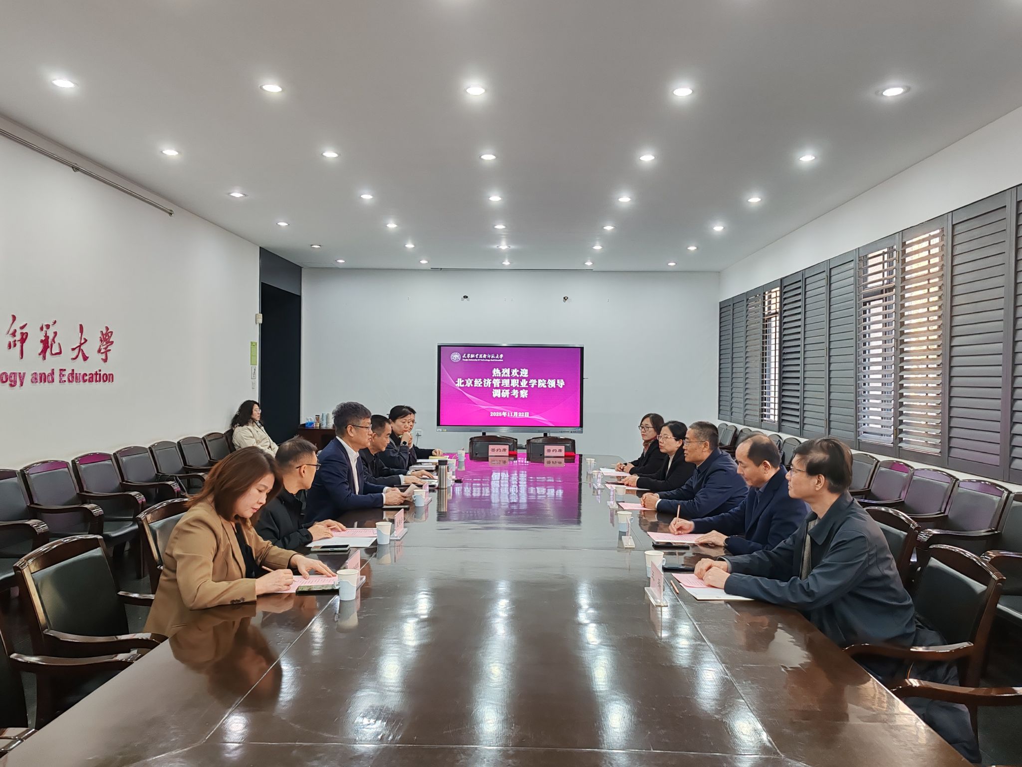 近日,北京经济管理职业学院党委副书记、院长田宏忠一行5人到我校调研交流。校党委副书记、校长郑清春,教育部鲁班工坊专家委员会主任、我校吕景泉教授热情接待了田宏忠一行。