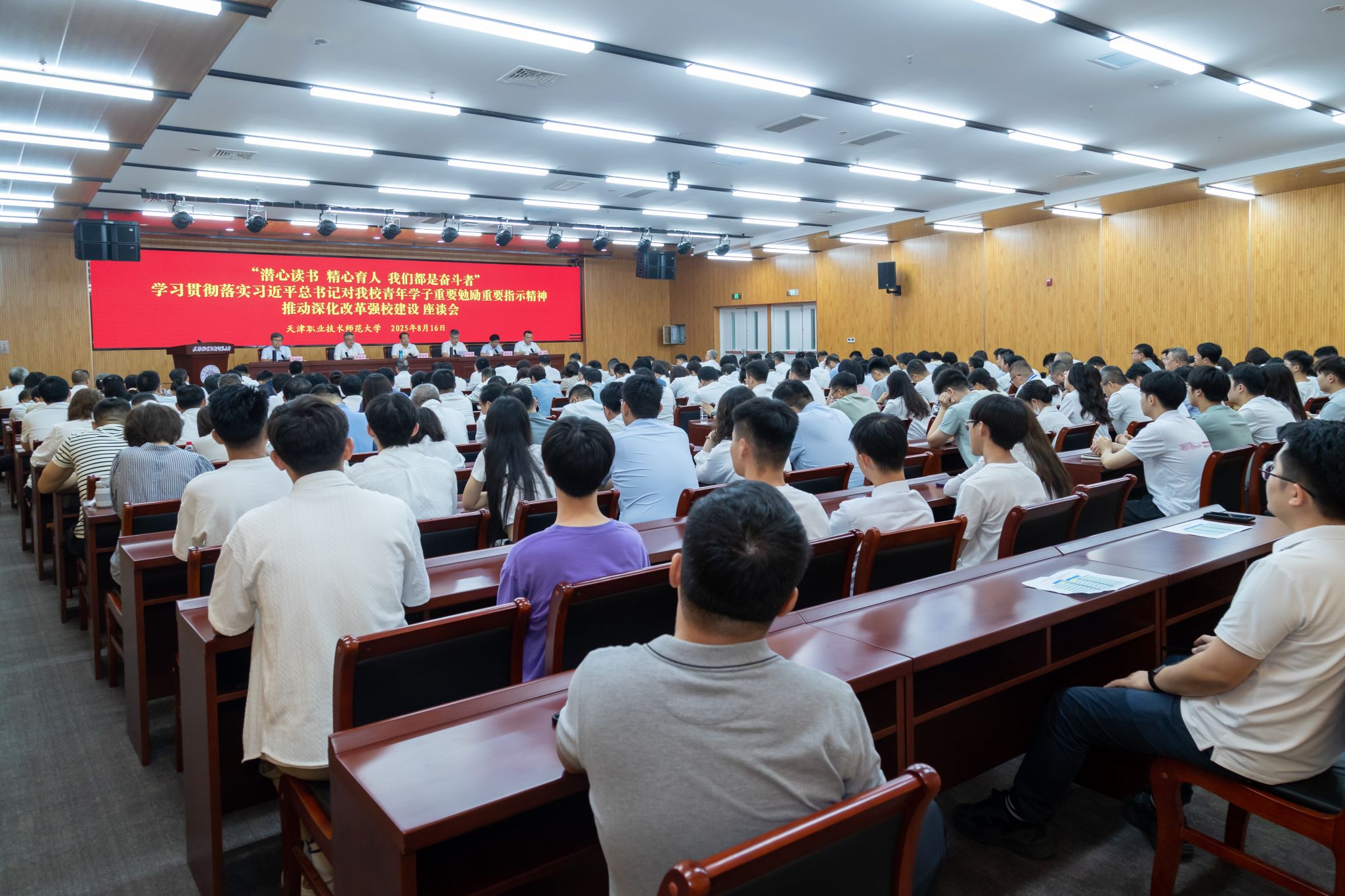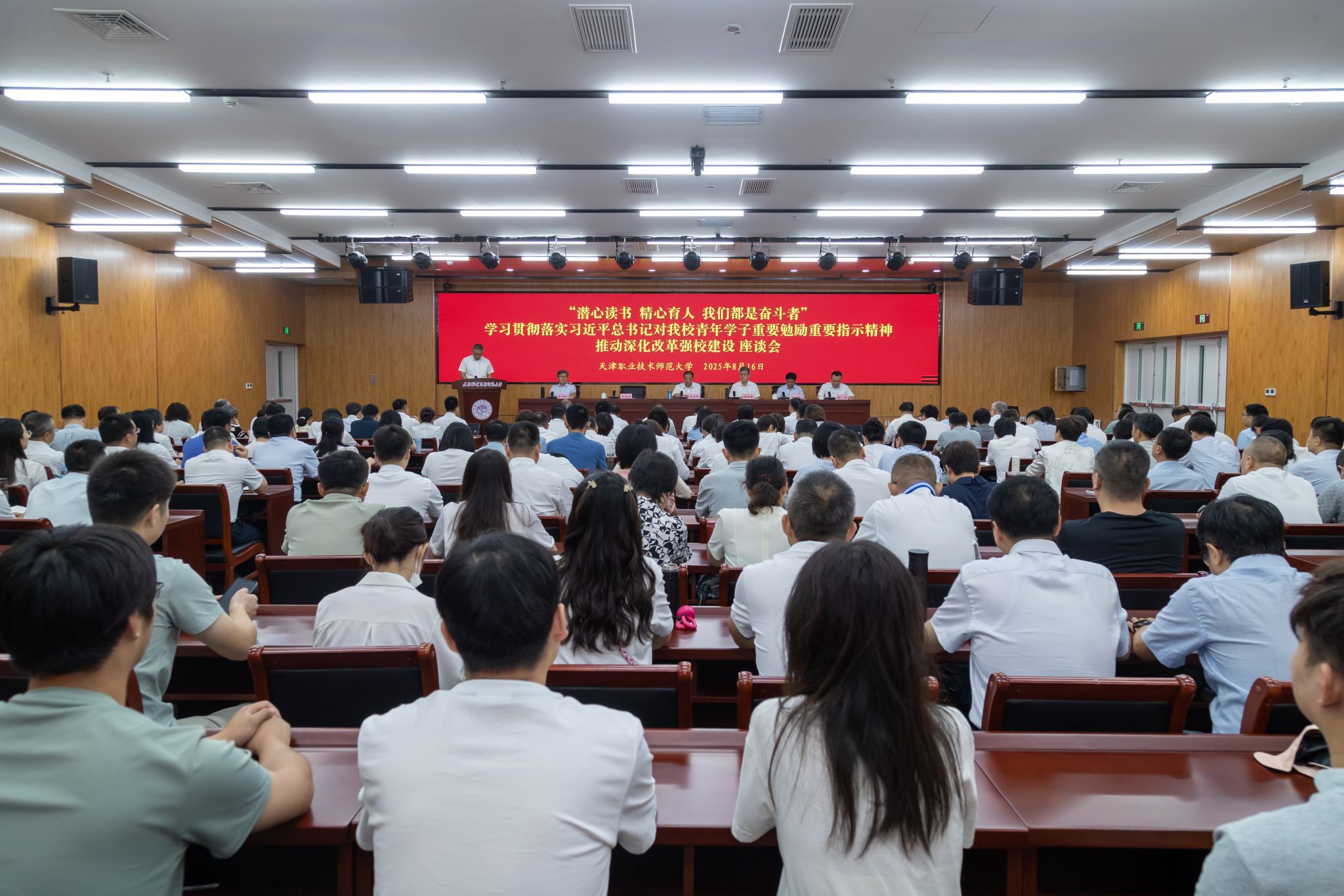 2025年8月16日,是习近平总书记对我校达娃等青年学子重要勉励重要指示精神六周年的重要日子。当天上午,学校在师资培训楼一楼报告厅隆重召开“潜心读书 精心育人 我们都是奋斗者”学习贯彻落实习近平总书记重要勉励重要指示精神推动深化改革强校建设座谈会,回顾总结六年来取得的一系列历史性、突破性、标志性成果,进一步推动习近平总书记重要勉励重要指示精神在我校牢牢扎根、绽放硕果。校党委书记张金刚,校党委副书记、校长郑清春出席会议并讲话。校党委常委、副校长蔡玉俊,副校长王劲松,校党委常委、副校长米靖出席会议,校党委常委、副校长李富森主持会议。