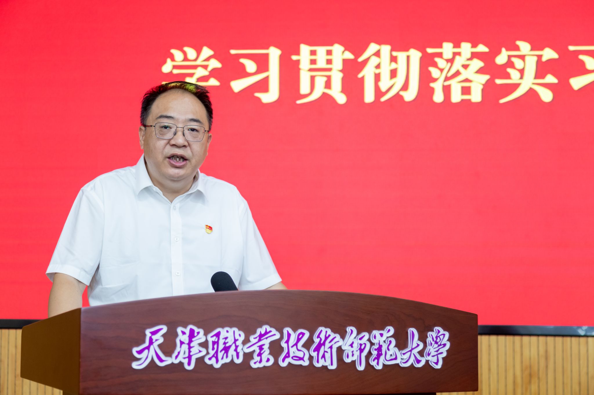 郑清春在讲话中指出,六年来,在习近平总书记重要勉励重要指示精神指引下,全体天职师大人争做“培根铸魂”的奋斗者,连续两次荣获“全国民族团结进步模范集体”称号,荣获“全国文明校园”“全国教育系统先进集体”等称号;争做“强校建设”的奋斗者,学校成为人社部与天津市共建高校,获2022年国家级教学成果奖特等奖,申博攻坚取得历史突破,工程学学科进入ESI全球排名前1%;争做“标杆建设”的奋斗者,当选8个全国性学术性组织主任、理事长,在世界技能大赛、全国技能大赛中做出突出贡献、取得优异成绩,荣获全国黄炎培职业教育奖优秀学校奖、杰出校长奖;争做“建功西部”的奋斗者,与西部省区教育、人社部门和职业院校建立深厚合作关系,持续派出援疆职教支教团,为西部培养培训大批优秀职教师资,得到中组部、教育部、国家民委支持和表彰;争做“职教出海”的奋斗者,在首届和2024年世界职业技术教育发展大会大放异彩,中国鲁班工坊品牌享誉世界,为建设中国特色、世界一流职业技术师范大学奠定了坚实基础。